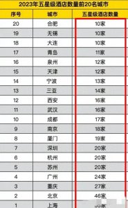 - 国内城市五星级酒店总量排名,重庆第三,深圳第七,广州与武汉呢