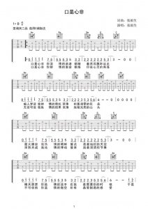 - 张雨生《口是心非》吉他谱 同学们可以对照谱子和音频来演奏,以下是张雨生的《口是心非》音频欣赏:...
