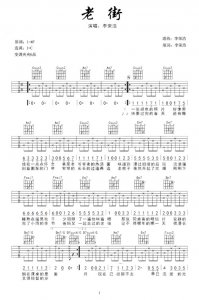 - 李荣浩《老街》吉他谱 同学们可以对照谱子和音频来演奏,原调#F调,选调采用C调指法,变调夹夹6品,也可以夹2-6品降调来演奏,以下是李荣浩的《老街》音频欣赏:...