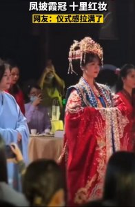 - 传统中式婚礼欣赏(中式国风婚礼典雅端庄) 近日,广西一网友分享中式婚礼走秀,凤披霞冠十里红妆,从容的姿态,美丽的凤冠,仪表大方得体。网友:仪式感拉满了。 祝福这对新...