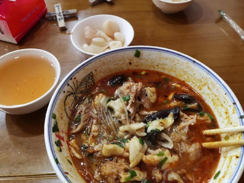 只顾吃却忘记了拍张照片,赶紧补拍。一大碗葫芦头灌肚下来,只觉额头冒汗,痛快至极,美美地喝了一口青茶,满足而愉悦。