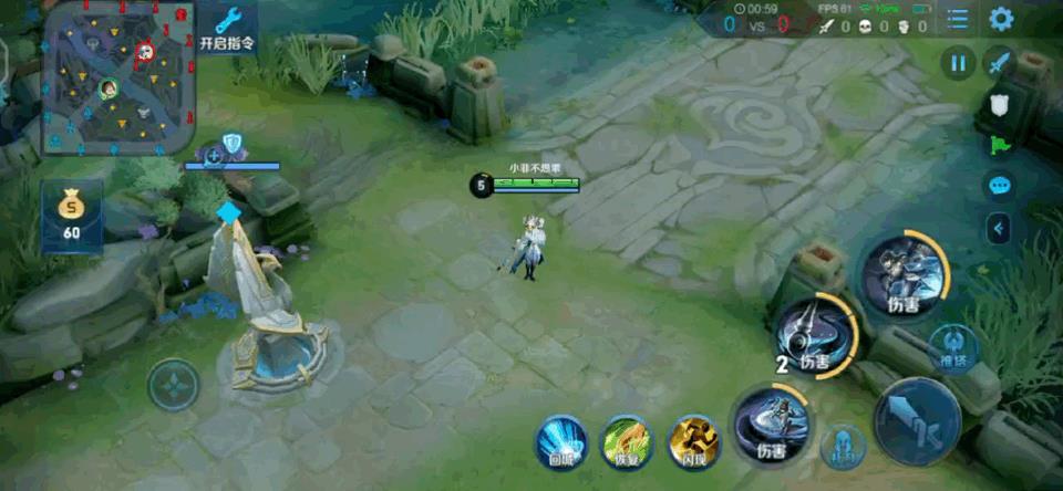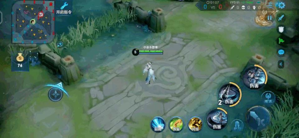 第一步小总结:不管什么连招只要放了一技能马上动方向盘都不会断大,一技能真空期只能用二技能的情况必须原地等一秒或者往前走两步。