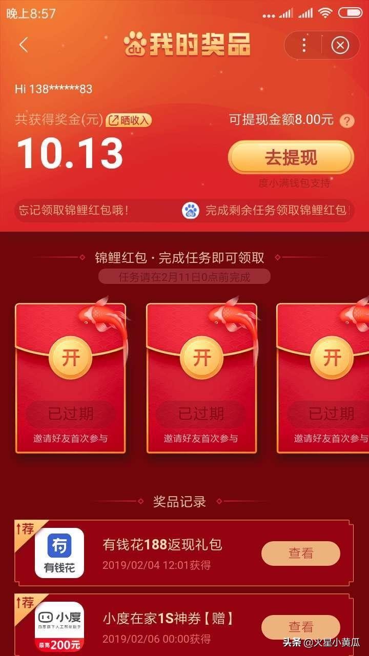 第一步,要先进入春晚分9亿界面,然后查看我的奖品,就会进入提现界面。如果你觉得这就算提现了,那就错了,此时你只是把你的红包提现到了度小满钱包,当然这时你的度小满钱包才会出现余额,也就是我们抢到的红包。