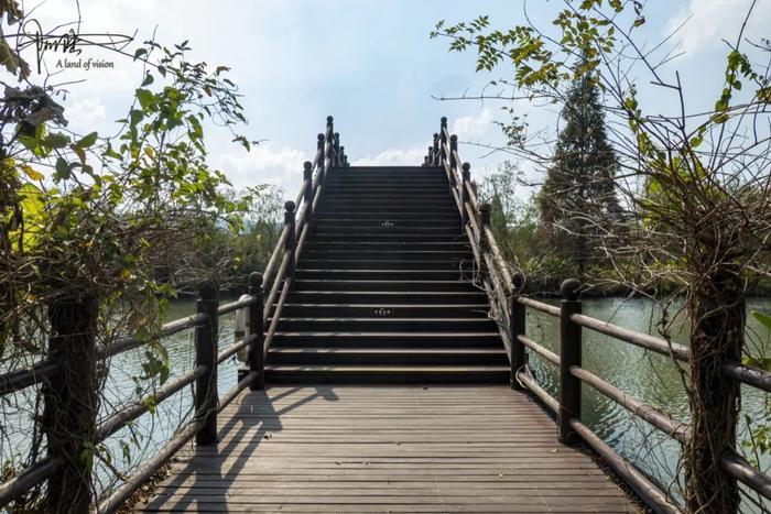 在公园里游玩,发现几个临近的小岛之间,绝大部分都以浮桥相连,人在桥上行走,如果剧烈运动,能明显有晃晃悠悠的感觉,好在两边护栏牢靠,看上去挺安全。但是在樱花岛和香草岛之间,码头和宣教处附近却有一座石桥。