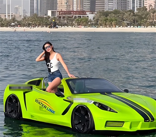 画面中,洪永时夫妇开着很罕见的水上跑车出海,跑车外观是绿色的,设计非常酷炫,相信价值不菲。两人开着跑车在水上驰聘的样子,实在太拉风了。