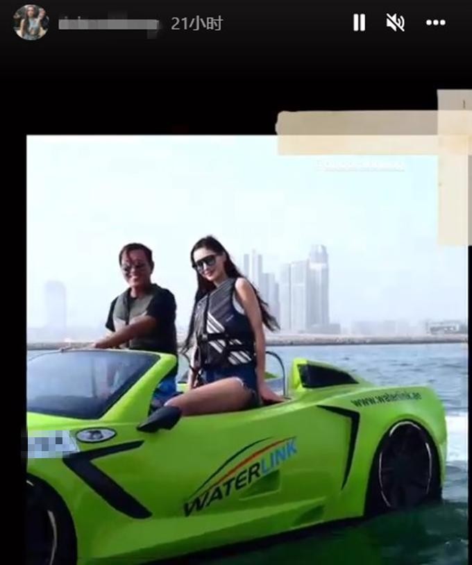 富豪洪永时开水上跑车出海!4婚妻子穿短裤秀身材,大长腿太吸睛
