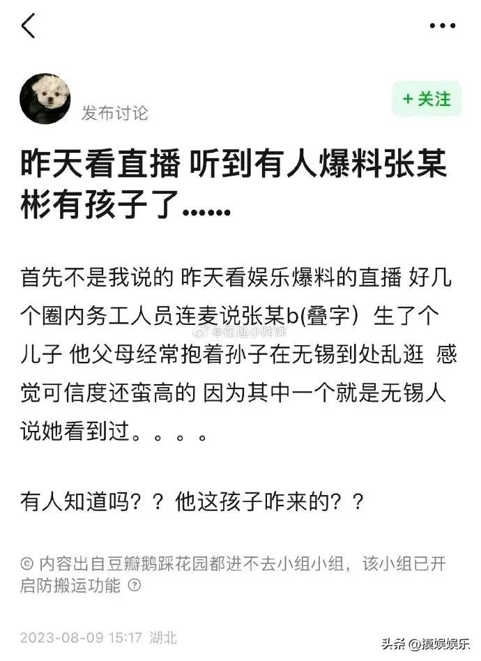 没想到两年之后,再次被传出孩子瓜,而且这一次爆料指名道姓的说是张彬彬。当然了,这都是网传而具体的事实,是有待于官宣考证。