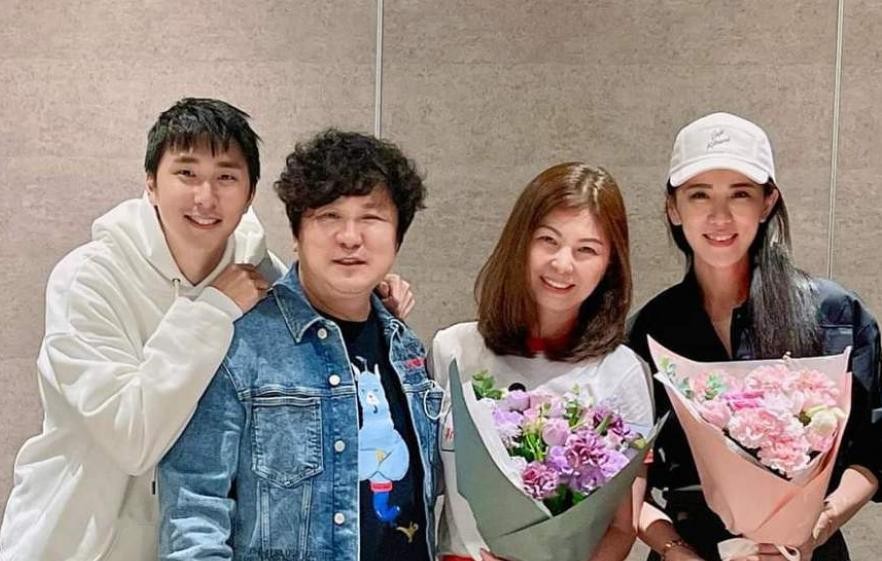 去年的母亲节,一家四口聚在一块庆祝,同框的胡瓜与秀秀,没有表现出一点尴尬,表现落落大方。
