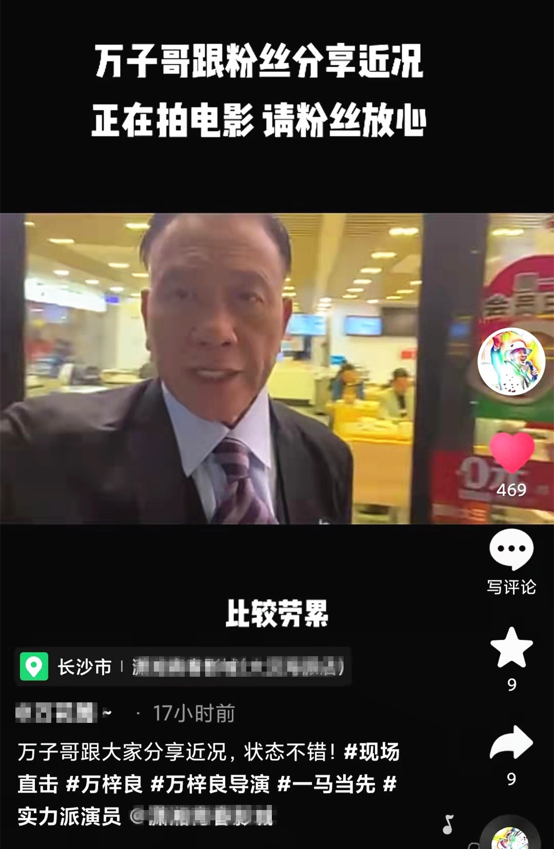翻开该网友的以往动态,曾分享过很多万梓良的生活日常、拍电影花絮等,他应该是万梓良团队的成员。