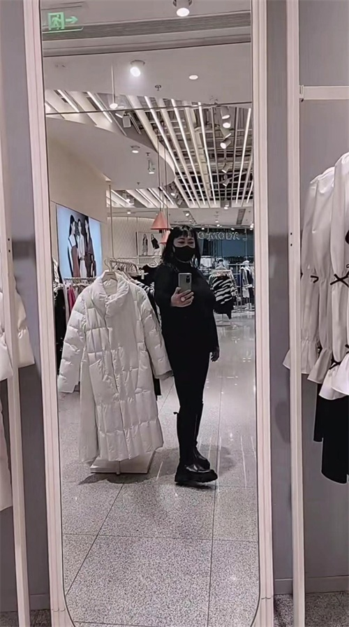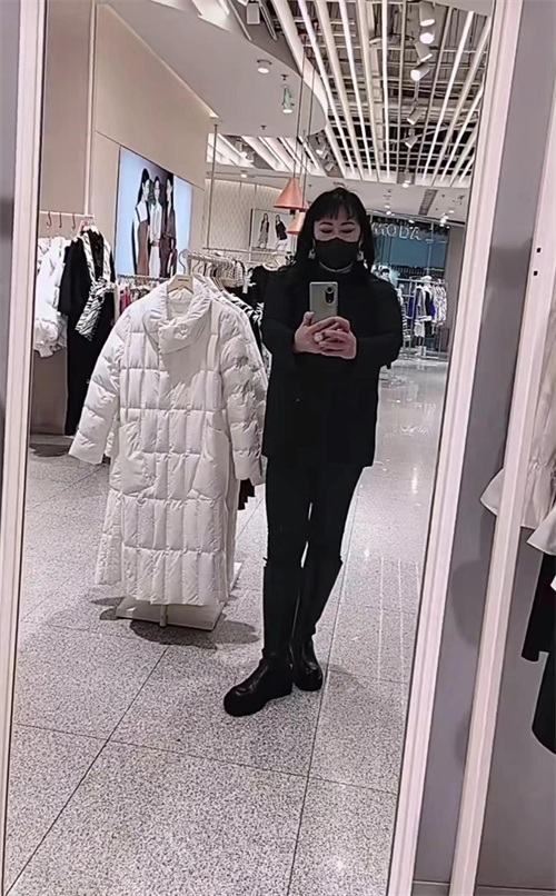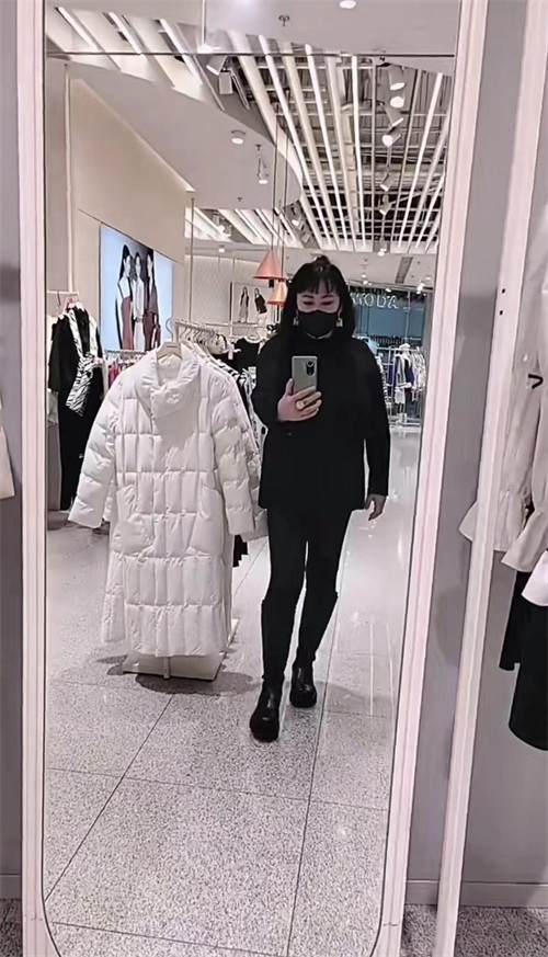 只见她站在商场某家店铺里,举着手机对着镜子不停地拍摄。期间,她还旋转身体,变换各种姿势,看得出来她对自己现在的身材相当满意。