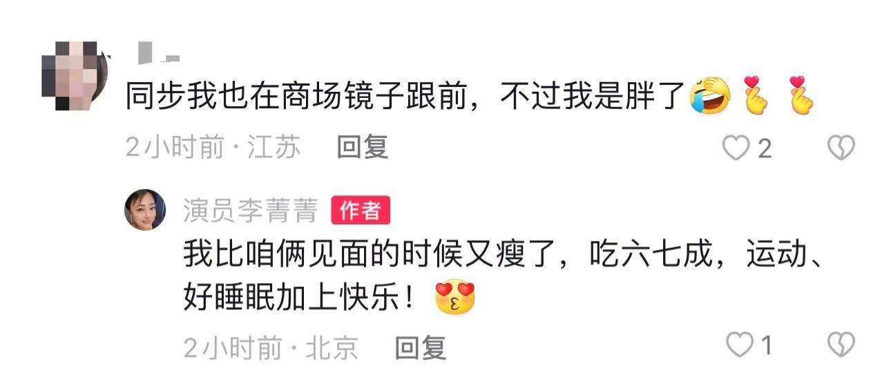 确实,瘦身成功后,已经52岁的李菁菁好似状态回春,虽然眼角仍然有些细纹,但皮肤白里透红,令她显得年轻了不少。