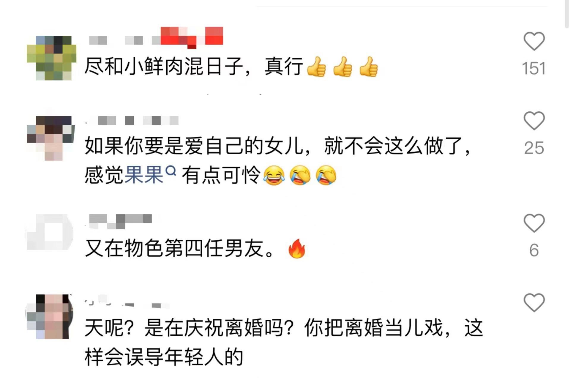 李菁菁被3位男子簇拥在怀里,一会儿对着镜头比心,一会儿又拉起黑衣男子的手紧紧握住,几人的互动显得十分亲密,也因此引来了不小的争议,甚至有人怀疑李菁菁又在物色第四任老公。