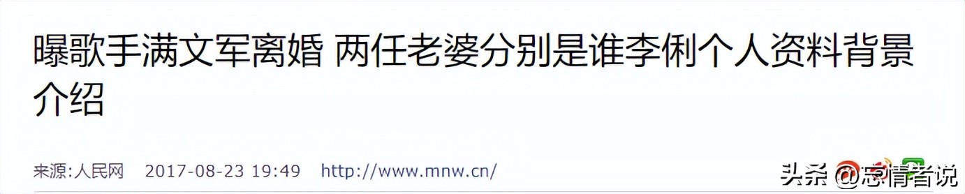 来源:人民网 2017-08-23 曝歌手满文军离婚 两任老婆分别是谁李俐个人资料背景介绍