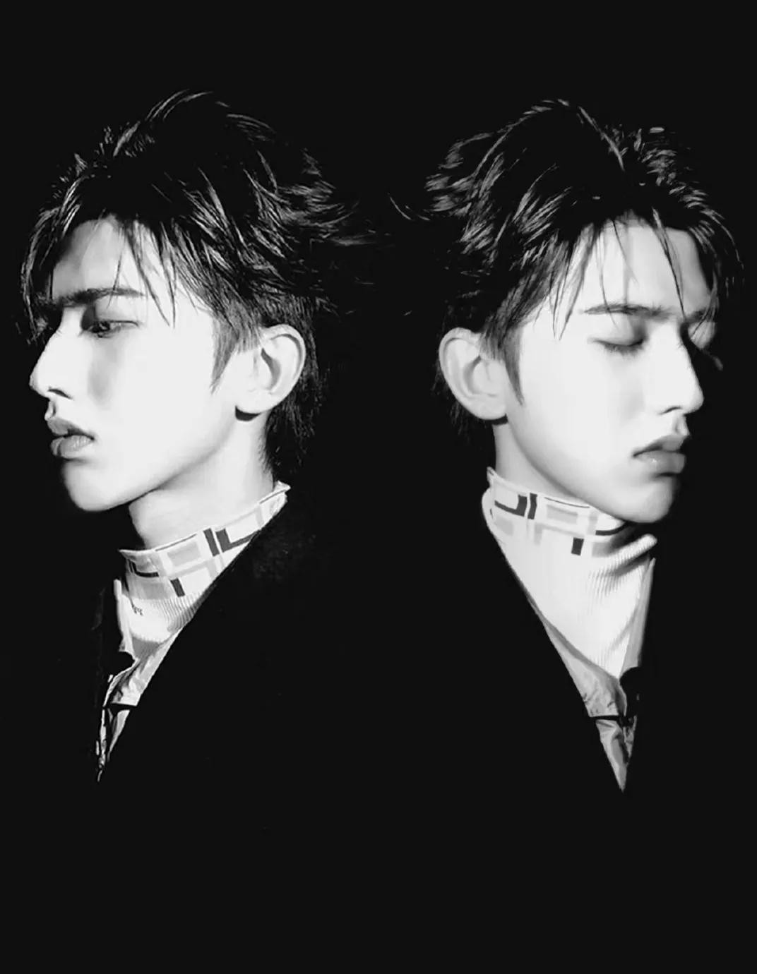 这组照片中,蔡徐坤画着略显浓重的妆,特别是黑色的眼影和垂落的刘海儿,颇有一种禁欲之风。
