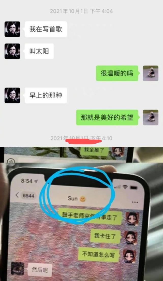 除此之外,两人10月初聊天,陈令稻说自己在写歌,歌名叫太阳,孟美岐的社交账号名恰好也叫“太阳”,是不是很巧了。
