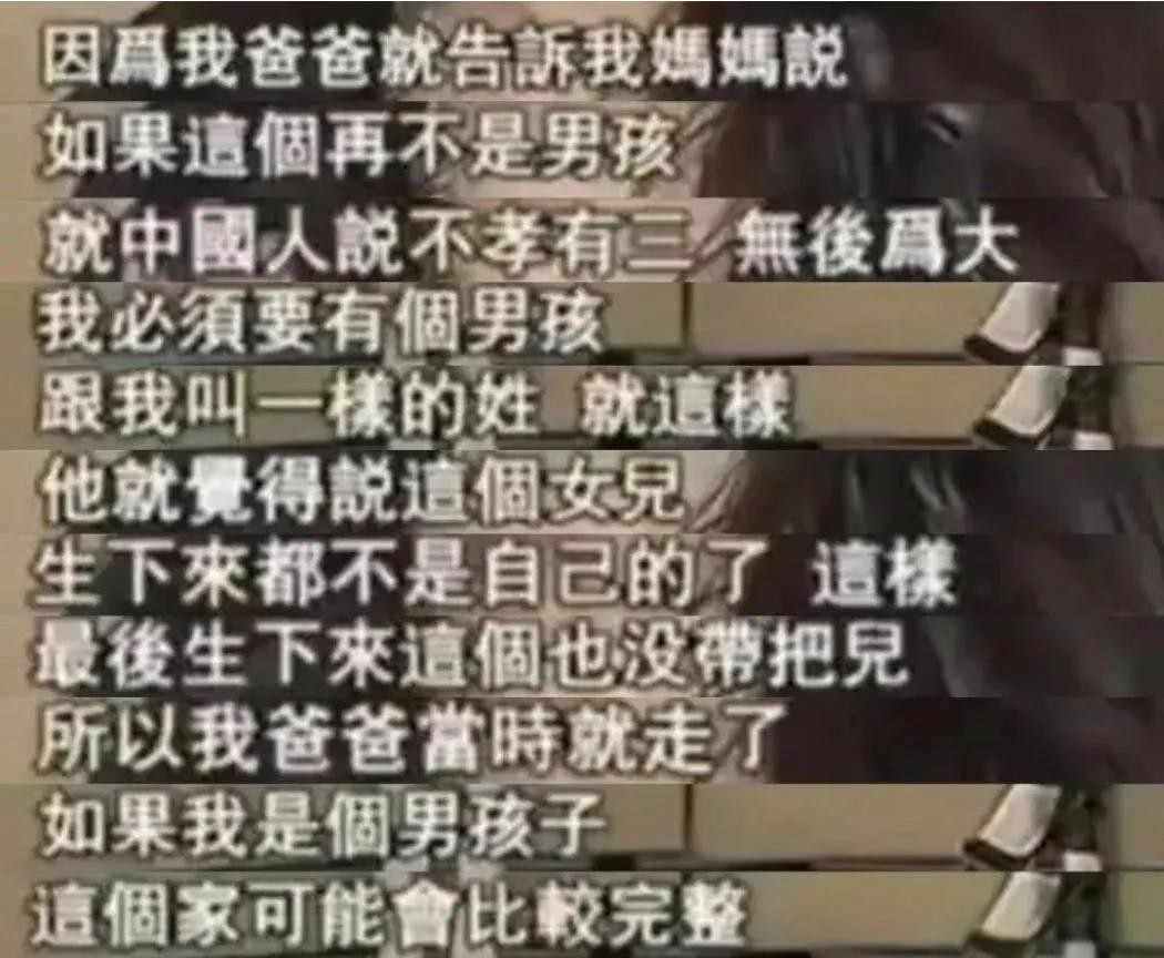 女孩的身份给父亲带来的遗憾成了她一生的心结,她为自己“没有带把”感到愧疚。