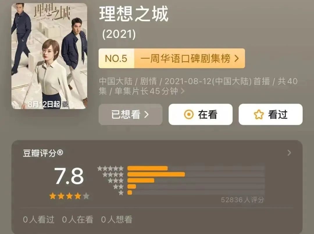 作为传递娱乐与旗下厚海文化2021年推出的现实主义力作,现实题材职场剧《理想之城》被2021综艺报年度影响力评选为“年度剧集”。剧集以建筑业为背景,凭借真实且落地的品质,为国内行业剧树起新标杆。该剧自去年8月开播至收官,口碑和热度不断走高:豆瓣最高评分7. 8,爱奇艺站内热度一度高达8257。不少建筑从业者“现身说法”对剧集点赞,被誉为“中国工程造价学科领军人”的尹贻林教授也在公众平台多次力荐该剧。