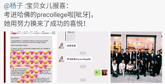 当初杨子晒出女儿考上哈佛预科的照片,从他的语句中能感受到骄傲与幸福。