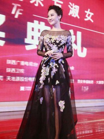 许晴的这身黑色纱质花仙子礼服十分精致,尽显优雅,不愧是不老女神。