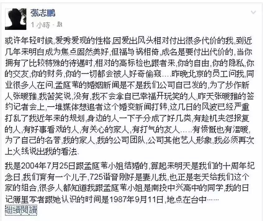更尴尬的是,在结婚十周年的前一天,张志鹏还发了近四千字的长文对孟庭苇进行告白。