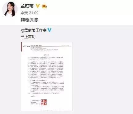因此孟庭苇工作室很快发布了一条严正声明进行辟谣并维权。