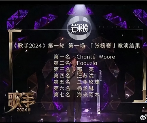 经过激烈的对决,5月10日报出第一轮赛事结果:第一二名被国外两名歌手获得,那英排名第三。