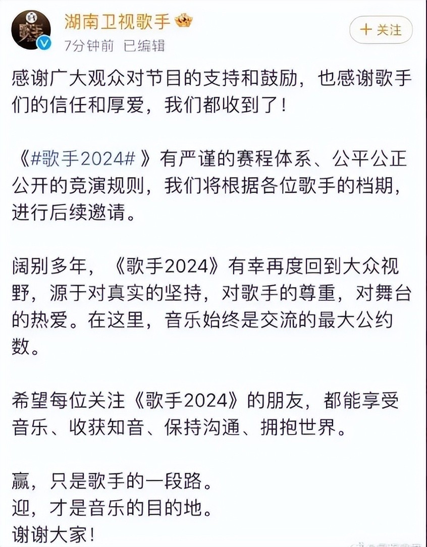 湖南卫视官方随即回复: