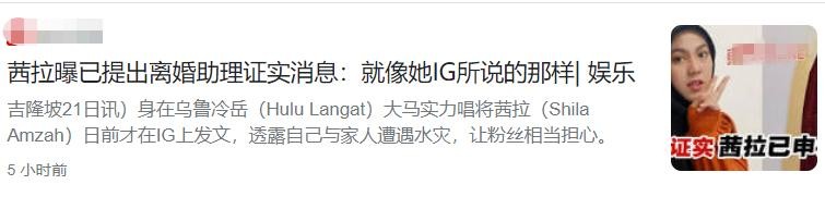 12月21日,根据媒体报道,马来西亚知名歌手茜拉宣布离婚,结束3年夫妻关系,消息一出,外界震惊不已。