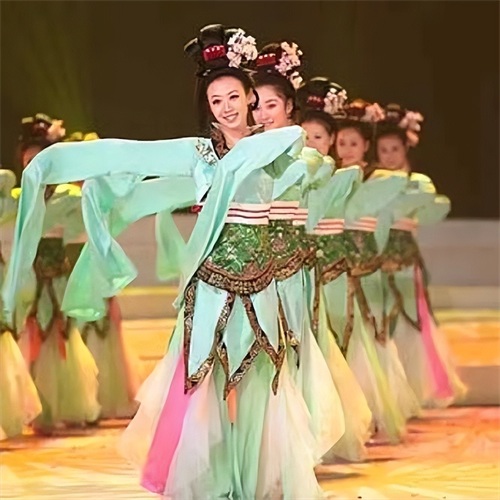 这个舞蹈源自中国唐代的舞蹈《绿腰》,在改编过程中,将舞蹈的姿态和整体表现融会贯通,突出了女性的婀娜多姿和轻盈的体态,更深刻地诠释了舞蹈的主题,进而增强了观众对演出的情感认同和观赏兴趣。