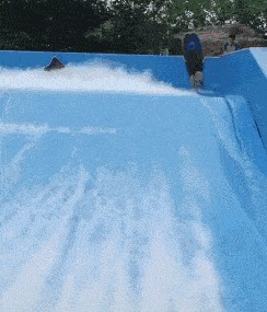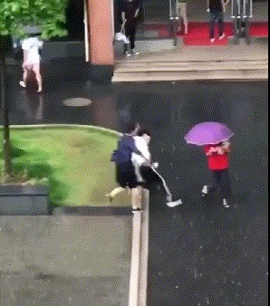 小哥真的很难受,不小心摔了一跤,全身湿透