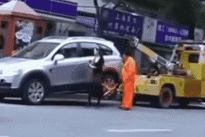 这才是女司机该有的性格,直接把你的拖车拖跑。