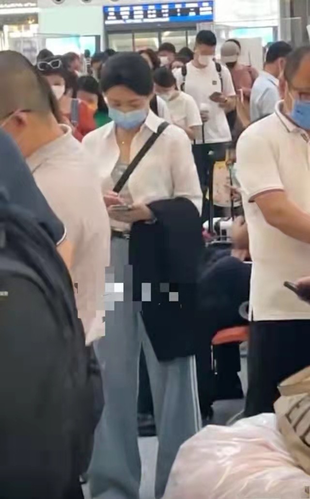 可以看到周涛身后的队伍很长,不过她并未表现出一丝急躁,而是低头安安静静地玩着手机,虽然她被口罩遮挡住了半边脸,但在人群中还是能一眼被认出来,气质十分出众。