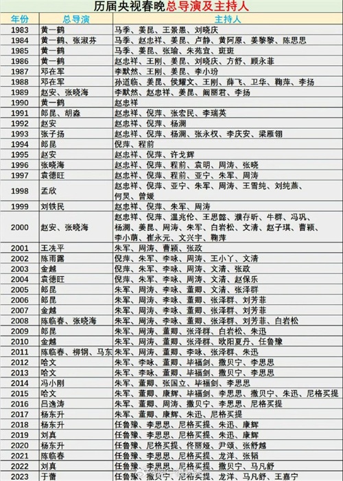 春晚,这个陪伴中国人度过无数个除夕夜的经典节目,其背后的总导演和主持人阵容也是备受瞩目。从早期的黄一鹤、邓在军,到近年来的于蕾、刘真,每一位总导演都以其独特的视角和创意,为春晚注入了新的活力。