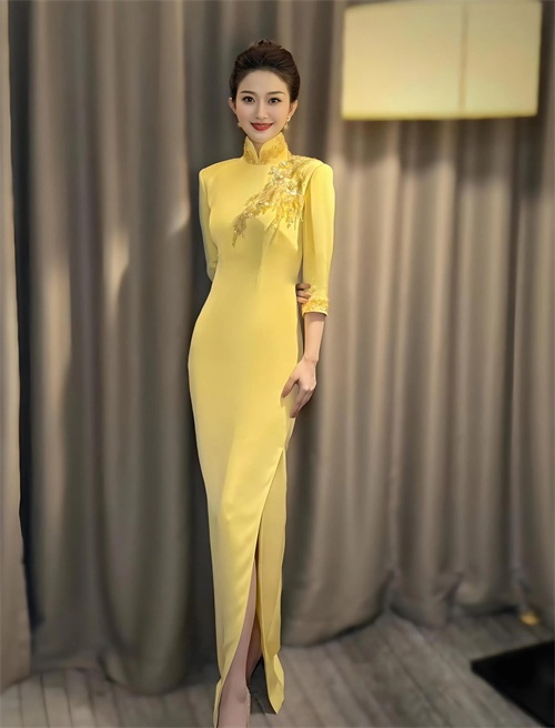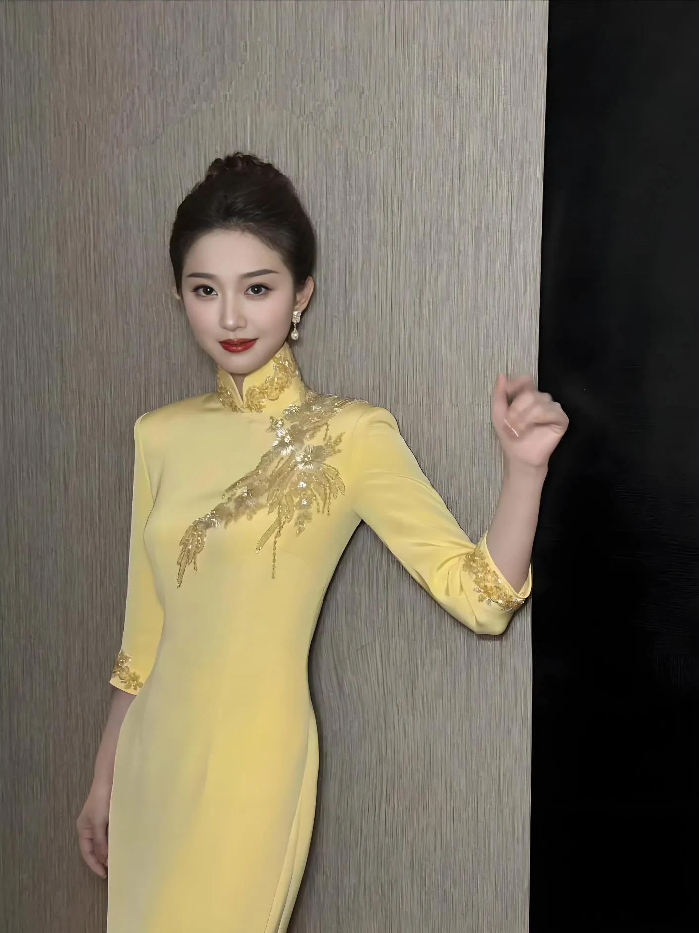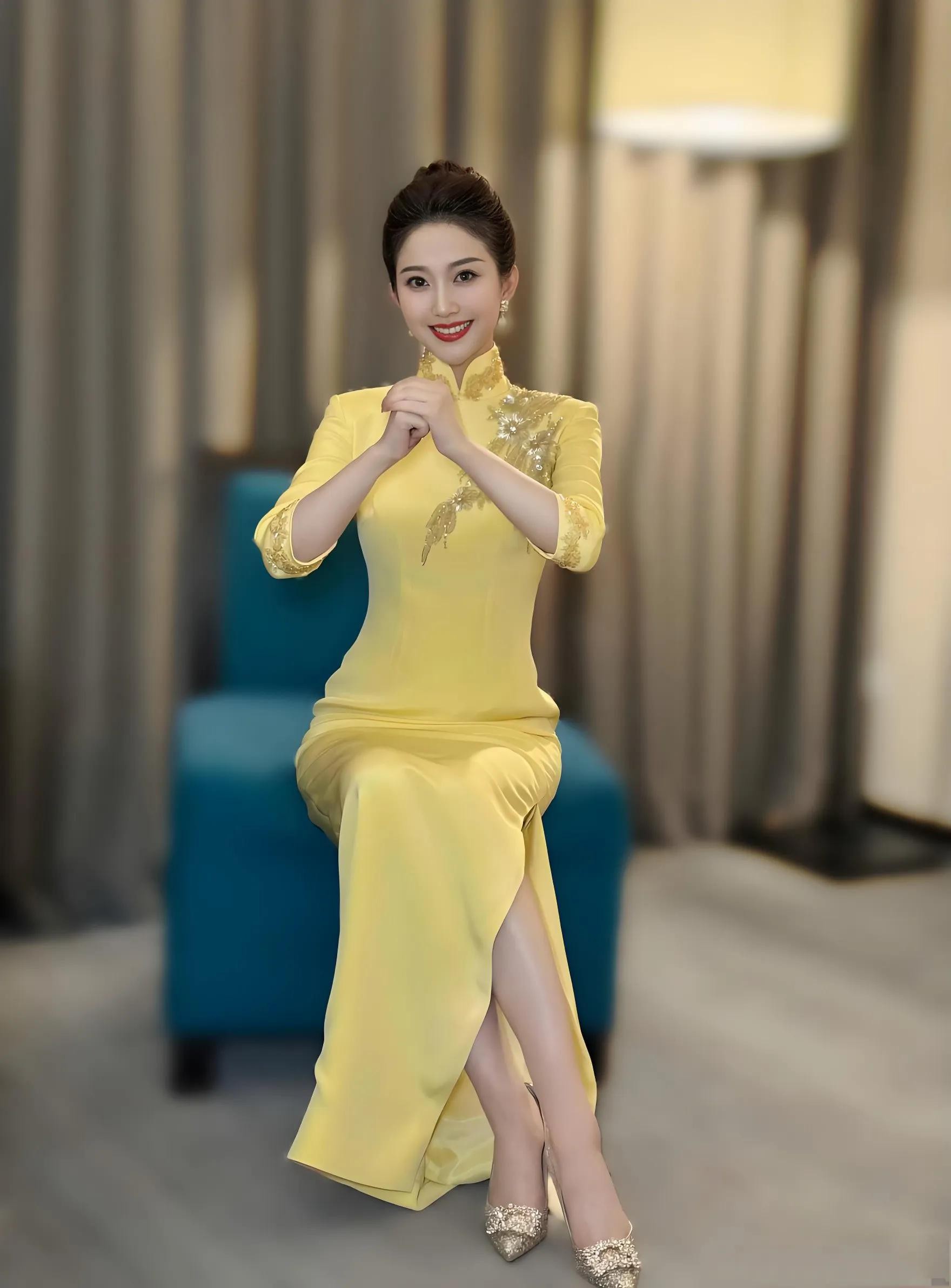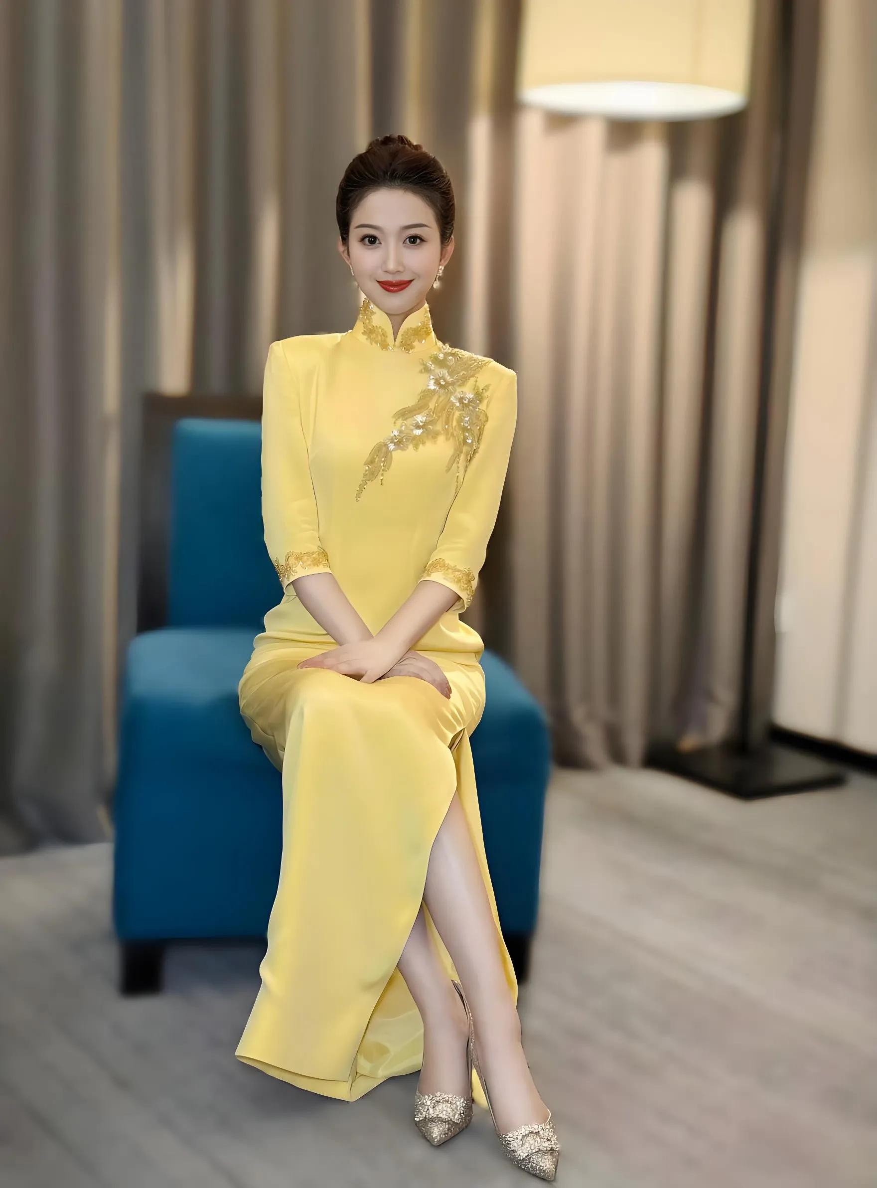 主持人心悦,一袭明黄色旗袍亭亭玉立!