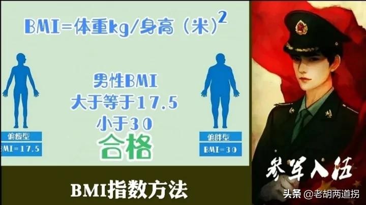 目前,征兵体检标准施行的是BMI指数标准。BMI指数是用体重公斤数除以身高米数的平方作为标准体重。