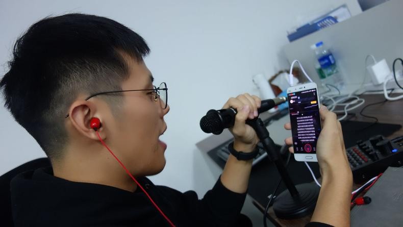 因为可操作的模式太多,笔者就选择了单手机模式进行了详细演示,可以看到,在笔者用K歌软件唱歌的时候,整个机体还是比较轻便的,并且唱出来的声音,笔者的同事也听了,确实以为我在做直播,声音很通透,不愧是采用了双DPS芯片,声音高保真!而且笔者还实验了下变声功能,跟网上的变声软件那种很假的声音不同,从声卡里变声出来的妹纸音,听起来真的很真实,同事听了都觉得这不是笔者的声音,用来直播玩游戏玩变声绝对能有很多搞笑的段子发生。