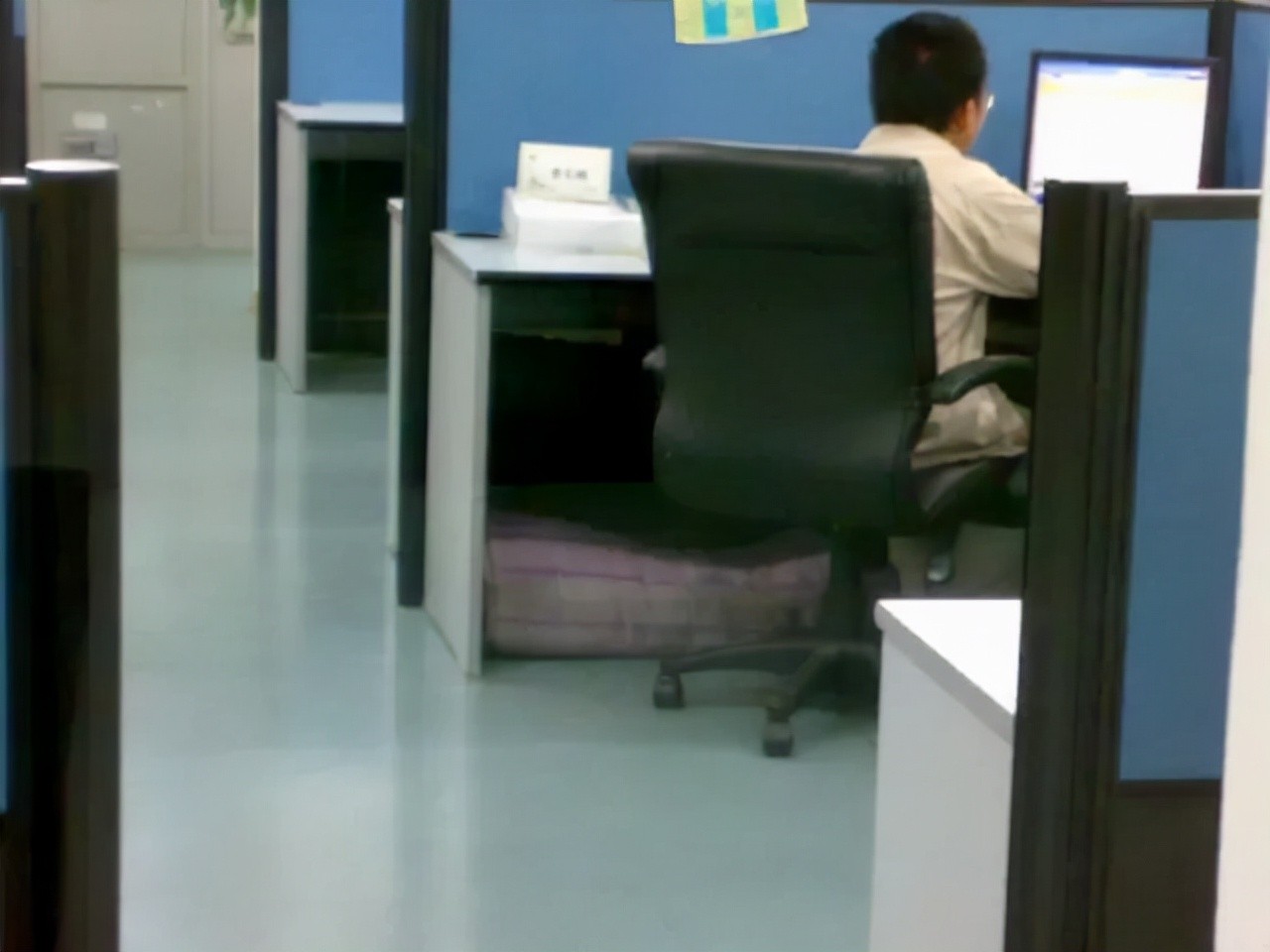 还有的员工把折叠床垫带到办公室,方便加班。这就是华为的床垫文化。