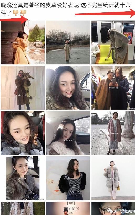 晚晚曾在微博上晒出穿着龙猫皮草和穿着猞猁皮草的照片。