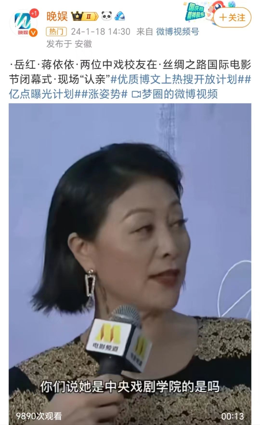 1月18日,她就以“中戏校友”的身份出现在丝绸之路国际电影节闭幕式上。