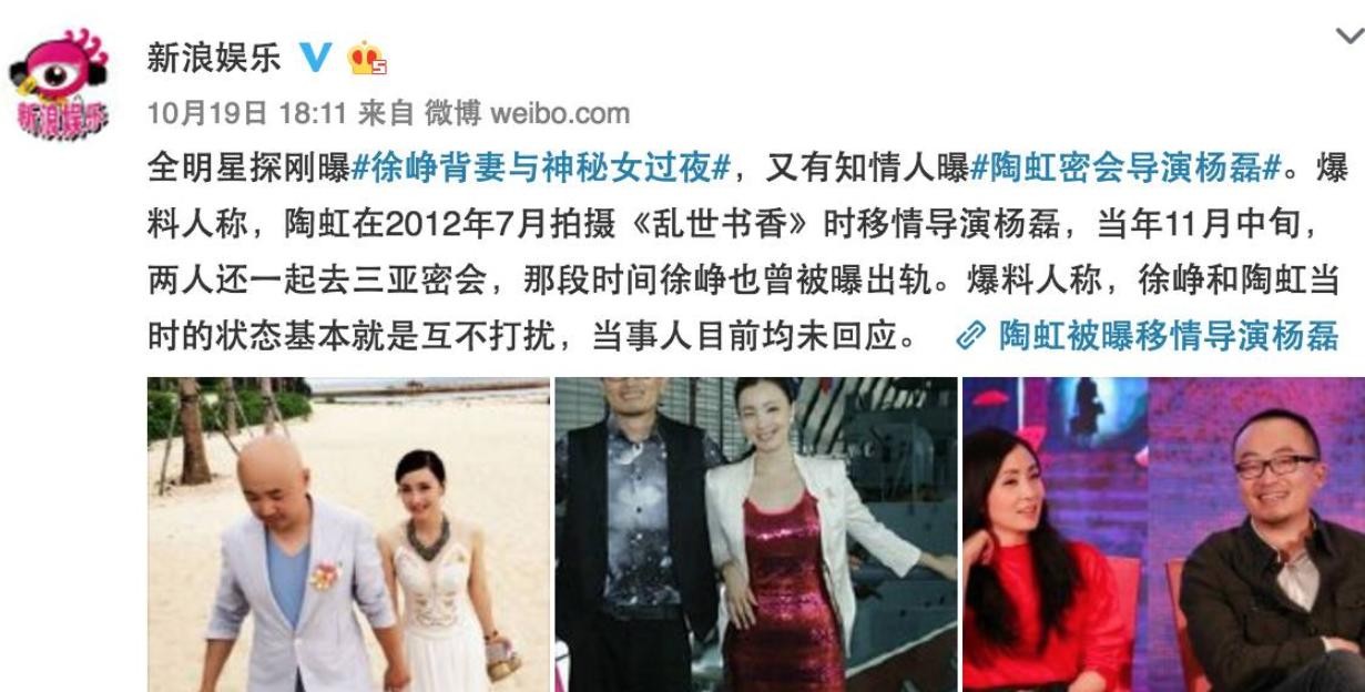 徐峥多次媒体抓拍到出轨照片,陶虹怀孕期间,被拍到在酒吧与一群女人举止亲密,后又被爆料与在大街上搂着一名女学生,关系不俗……