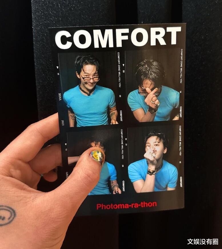 在公开的照片中,是权志龙手上拿着一张拍立得的样子,画面中是GD以比心、笑对镜头等多样的姿态拍摄的照片。除了照片中多样的表情十分吸睛之外,权志龙拿着照片的左手上的文身、美甲也吸引了许多粉丝的注意力。