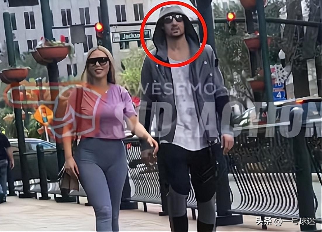 汤普森和那位女生走在大街上,两人有说有笑。从汤普森的打扮可以看出,他显然不想被认出来,要不然,大夏天的,他也不可能将自己包裹得那么严实。汤普森和那位女生本来手牵着手在逛街,看到有人在拍照,汤普森迅速松开了手,表情看起来也很不爽。