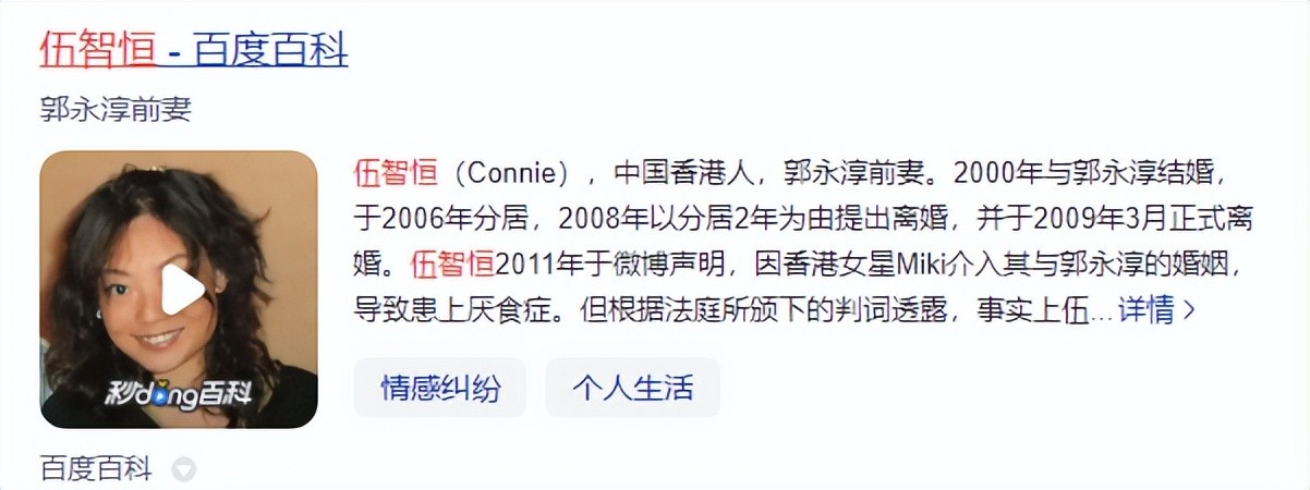终于,在06年郭永淳以性格不合的理由提出了分居,并将伍智恒赶出了家门。