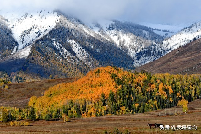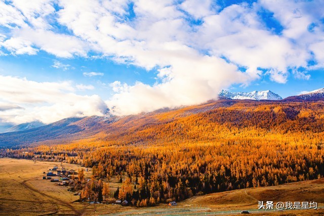 阿勒泰位于中国新疆维吾尔自治区最北部,秋天是阿勒泰最美的季节之一,五彩斑斓的自然风光和丰富的民族文化活动构成了一幅美丽的画卷。