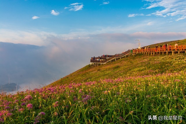 贵州韭菜坪的秋天是一个充满魅力和浪漫的季节。每年的8月至10月,这里的万亩野生韭菜花盛开,形成了一片壮观的紫色花海,被誉为东方的“普罗旺斯。