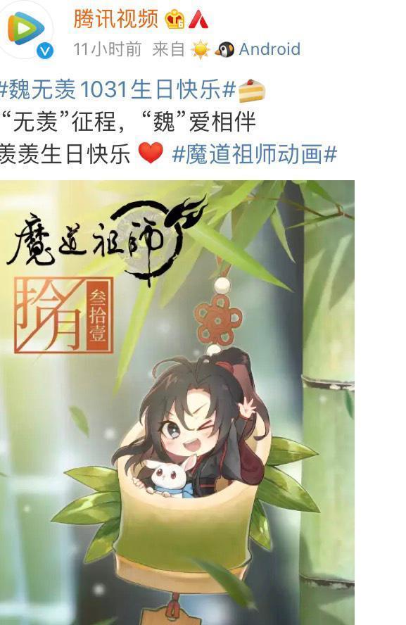 腾讯也是卡点送祝福,发文 “无羡”征程,“魏”爱相伴。羡羡生日快乐。