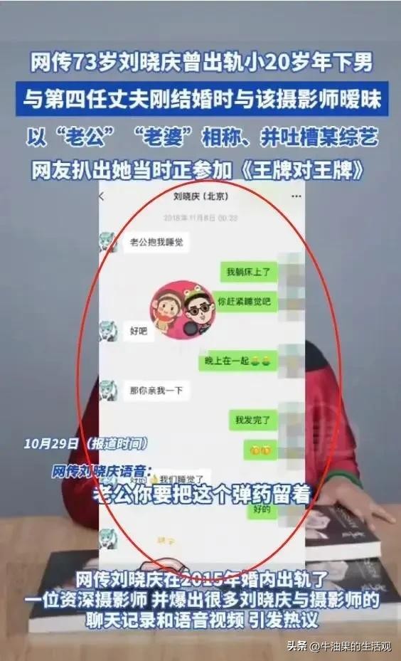 从摄影师的聊天记录来看,有刘晓庆的语音,显然两人是在热恋期,刘晓庆一口一句老公地叫着,全是虎狼之词让人脸红心跳。