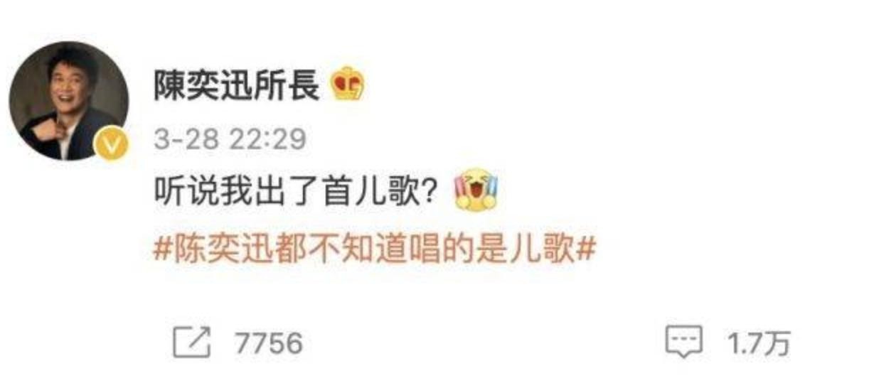 陈奕迅本人也表示,没想到自己唱了首儿歌。