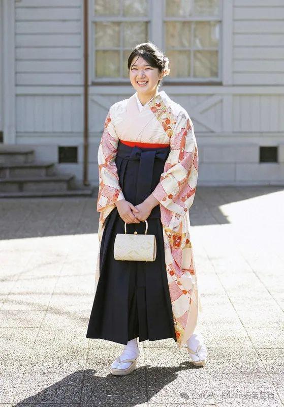毕业典礼上,爱子身穿浅粉色樱花和服,装扮应景,笑容甜美,看上去对新生活充满期待。