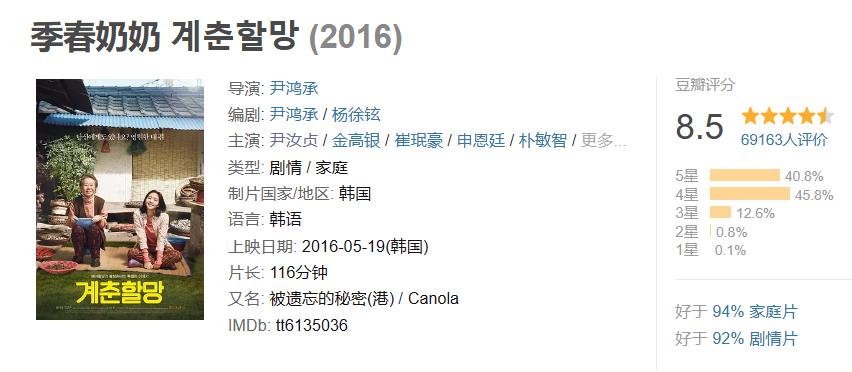 影片翻拍自 2016 年的韩国电影《季春奶奶》。